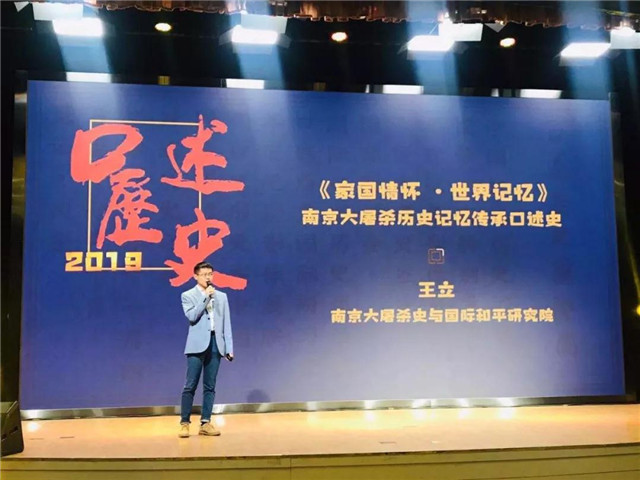 我馆馆员王立作为项目组代表登台分享。他以“家国情怀 世界记忆——南京大屠杀历史记忆传承口述史”为题,介绍了我馆口述史项目的发展情况。他特别讲述了南京大屠杀幸存者夏淑琴的故事。因为侵华日军南京大屠杀,许多人被改变的人生无法重来。他们成为“幸存者”,但没有人愿意以这样的“幸运”受到关注。父母在面前惨死、姐妹被日军凌辱,那种痛苦深深地烙印在他们记忆里。王立最后动情地说,“生命凝成的记忆,从历史导向未来——铭记历史、珍爱和平,应是我们一生的坚守。”