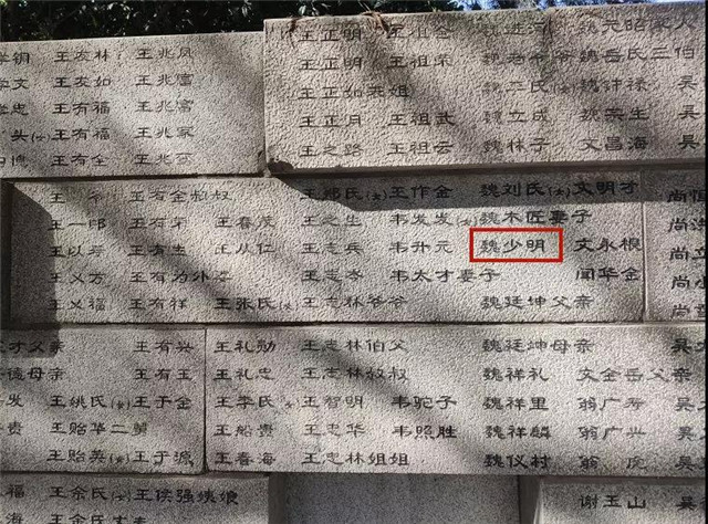 发现在名单墙上有一死难者“魏少明”(音同字不同)