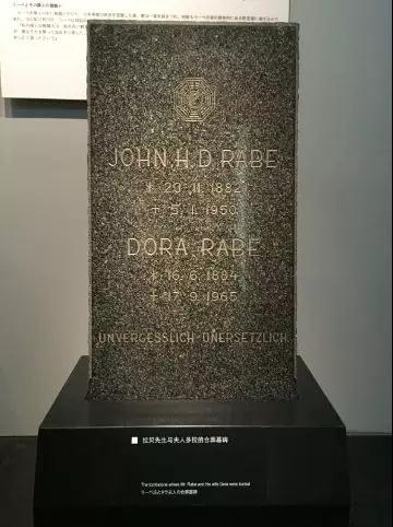 1997年,莱因哈特夫人将拉贝的墓碑捐赠给我馆,现于我馆史实展厅人道主义救援的部分中展出。墓碑不仅铭记着拉贝先生的人道主义精神,也铭记着中国人民对拉贝先生的感恩。