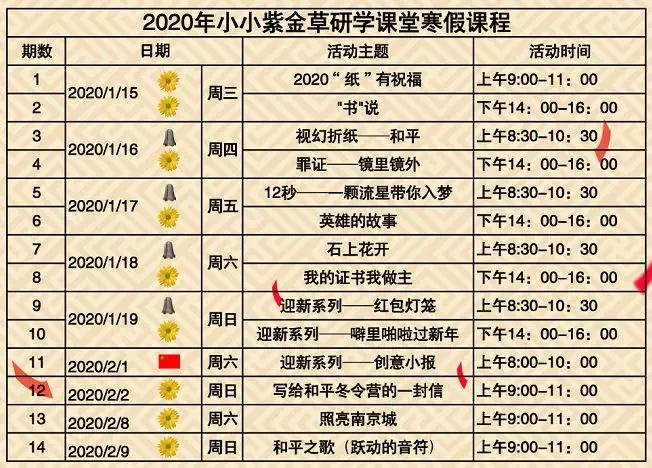 时间:1月15日至19日、2月1日、2月2日、2月8日、2月9日