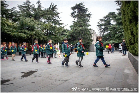 组织小朋友们参加升旗仪式,向遇难同胞默哀、献花,撞响和平大钟。