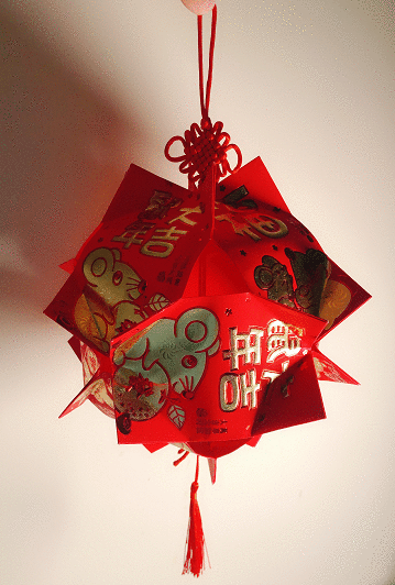 红包灯笼:用红包制作灯笼的外轮廓,用双面胶粘成球体,再穿如意结和流苏;