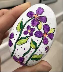 让小朋友们了解不同类型石头的寓意。在鹅卵石上手绘和平之花紫金草。