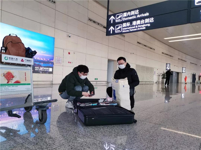 经过一次次爱心接力,2月16日,这批口罩终于抵达南京禄口机场,交给了纪念馆工作人员。