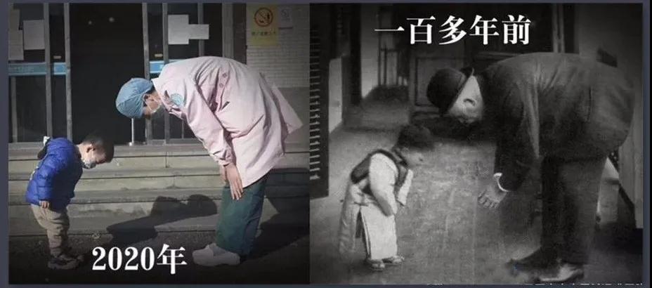 巧合的是,上世纪初,时任杭州广济医院(现浙江大学医学院附属第二医院)院长、英国人梅藤更先生查房时,面对小患者的鞠躬致谢顺势回礼的一瞬,也曾被摄影师抓拍下来。