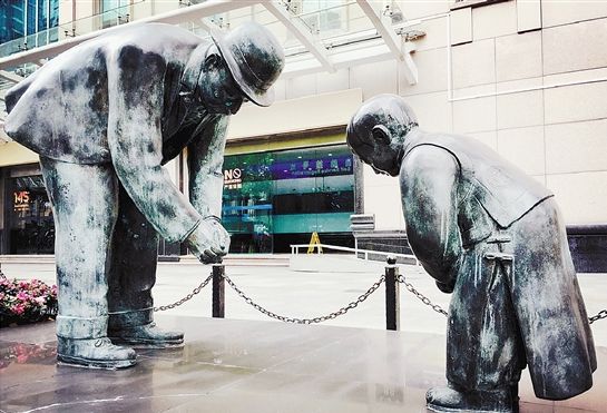 浙医二院门口,梅藤更与小病人的鞠躬铜像