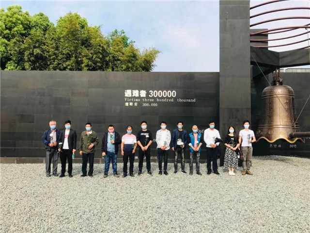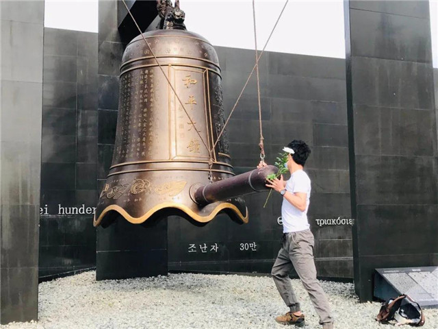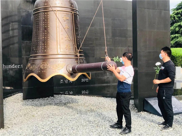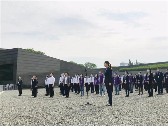 在纪念馆参加升国旗、撞响和平大钟仪式