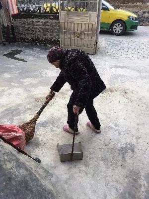 到达荔浦县城的第二天一早,我们按照地址找到了韦奶奶的家。韦奶奶佝偻着背,正低头在院子里扫地。我上前跟她打招呼。她饱经沧桑的脸上露出了和蔼的笑容,温和的眼睛里闪烁着慈祥的光芒。看着韦奶奶腿脚不便,我伸手想接过她的扫帚和簸箕,但奶奶朝我摆摆手。韦奶奶已年近百岁,她还坚持自己洗衣,只要能做的事情她都自己做。94岁以后,才不再种地。