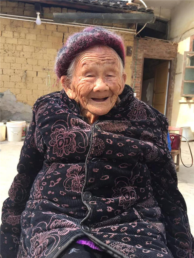 探访当天,天气特别好。我和韦奶奶来到院子里晒太阳。天空湛蓝,远处群山连绵起伏。我们手拉手,什么话也不说。韦奶奶望着我咧着嘴微笑。她纯真的笑容融化了我的心。