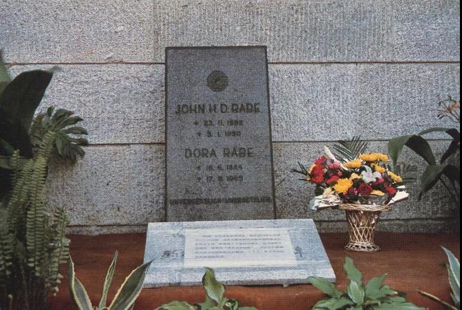 拉贝逝世后,他的亲人将他安葬在柏林西郊的威廉皇帝纪念教堂墓园。因德国方面对墓地使用有期限,到1985年,拉贝墓地占用时限已逾期。