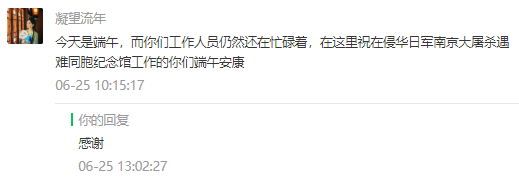 “纪念馆是来南京后必看的场所之一”