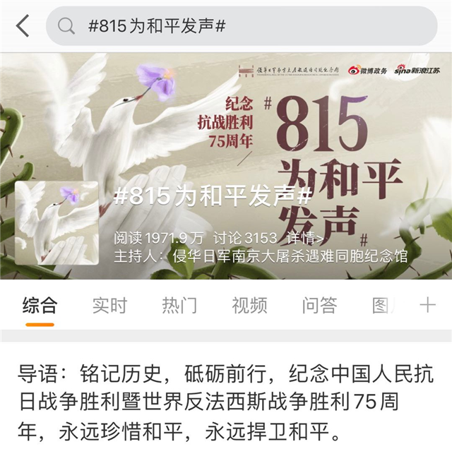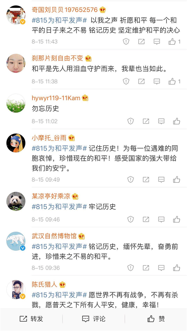 我馆#815为和平发声#和平“云集会”短视频全网刷屏