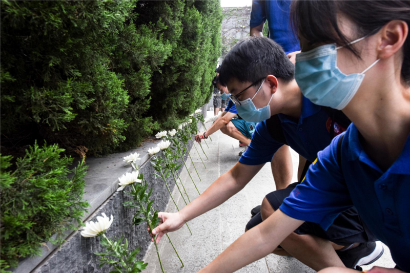 下午两点,全体人员首先参观《南京大屠杀史实展》,随后在纪念馆悼念广场向死难同胞敬献了菊花。