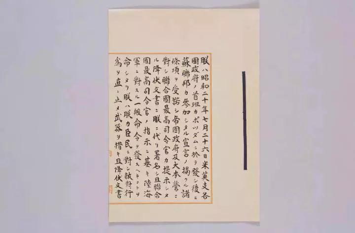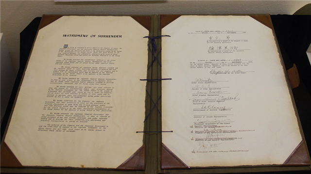 2015年8月31日,日本外务省展出1945年9月2日签署的投降书原件