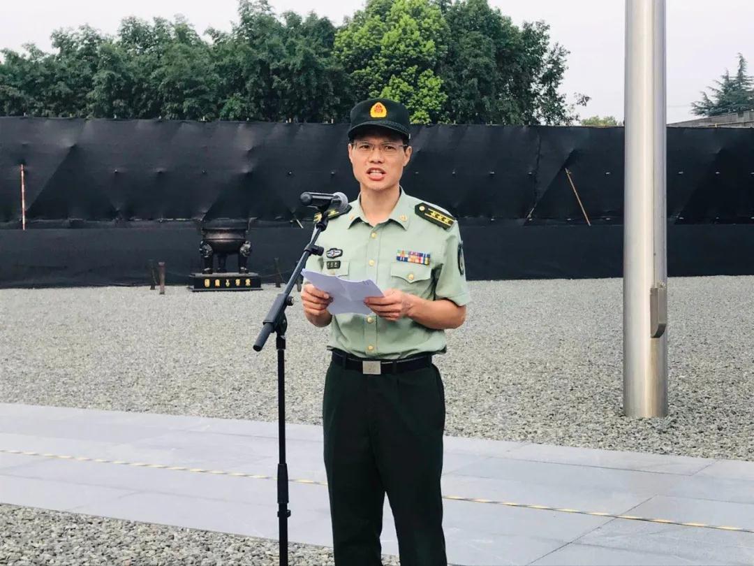 国防大学政治学院南京教学区政治指挥长刘先松在国旗下讲话。他说:“当年在短短六周时间内,我30万同胞惨遭日军残暴屠杀。一个国家想要和平,必须要有一支强大的军队。我们今天听到外面的车水马龙,我们拥有的和平生活是中国共产党团结中国人民,牺牲了一批又一批革命先烈换来的。事实证明,无论是抗战、抗洪,还是今年的抗疫,中国人民解放军都能守护祖国的安宁,打败一切来犯之敌。让全社会各条战线的人们都关心、支持和参与国防建设,我们的军队一定会更加强大,国家一定会更加富强!”