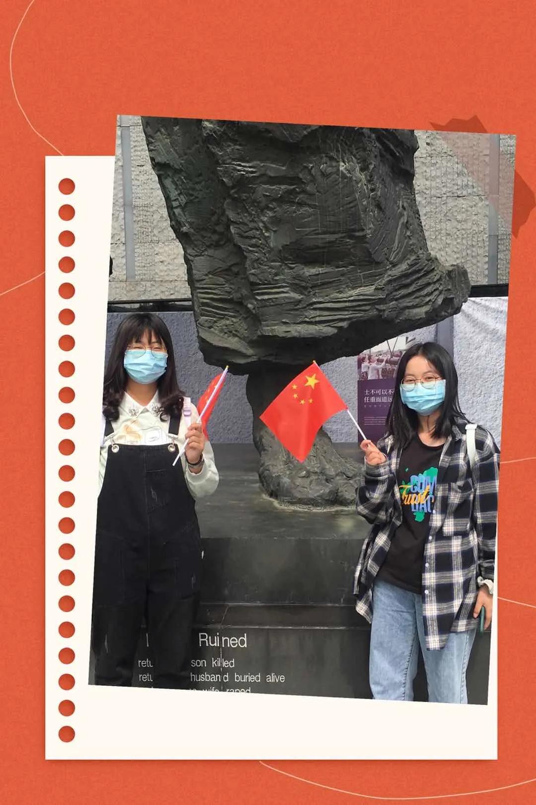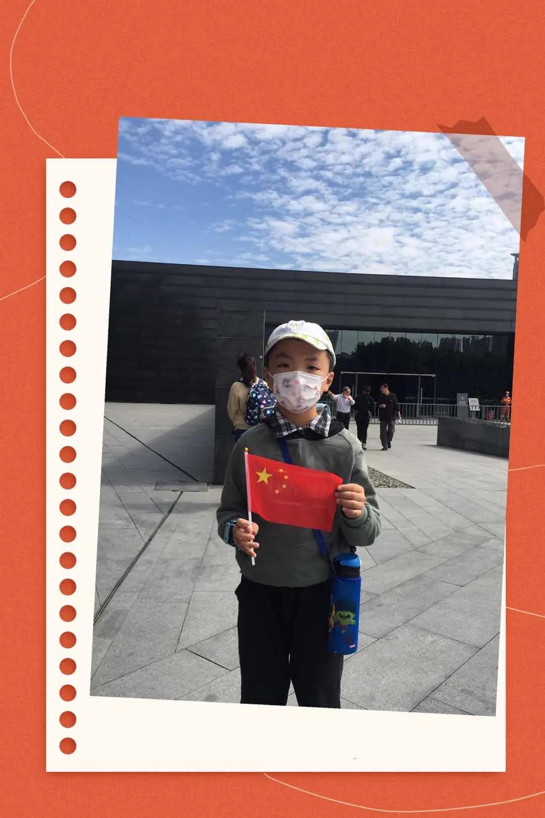 国庆期间,许多来馆参观的观众手拿国旗,在纪念馆以照片的形式,抒发爱国情怀。