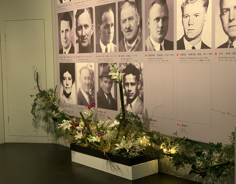 83年后的今天,纪念馆在《南京大屠杀史实展》人道主义救援部分国际友人照片墙前,举办“暗夜里的光 花语”主题展示活动。