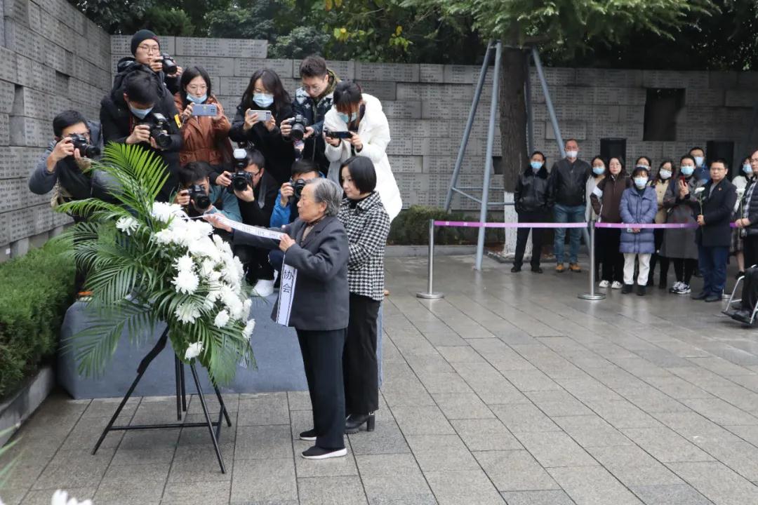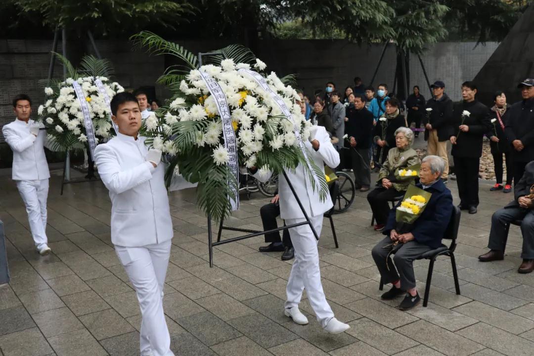 祭告活动尾声,南京大屠杀幸存者及遗属代表依次向遇难者名单墙敬献菊花。其他参加人员依次向遇难者名单墙敬献菊花。