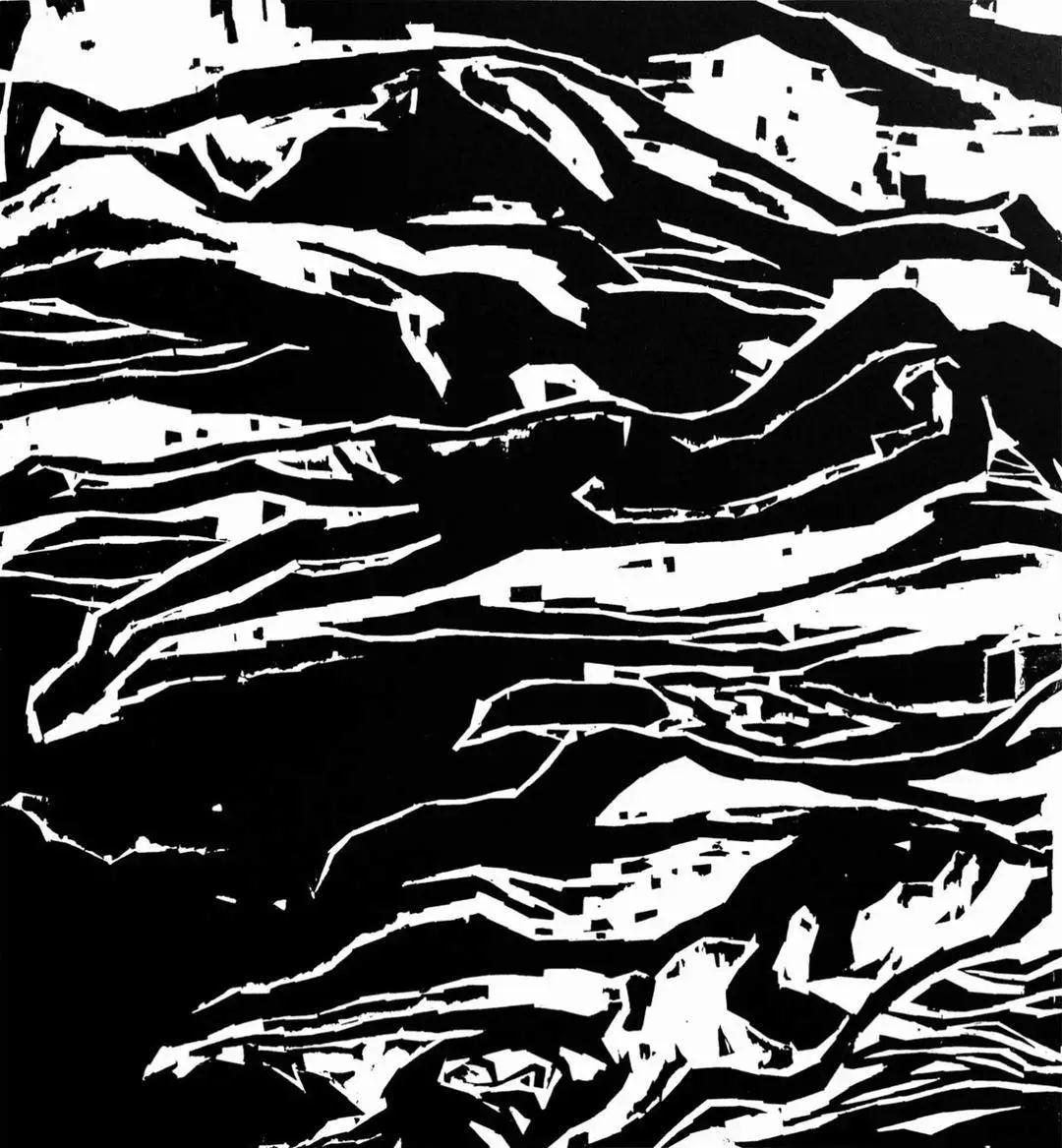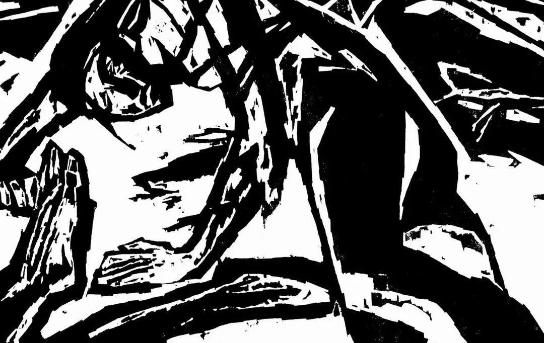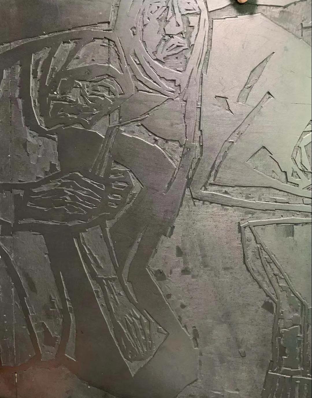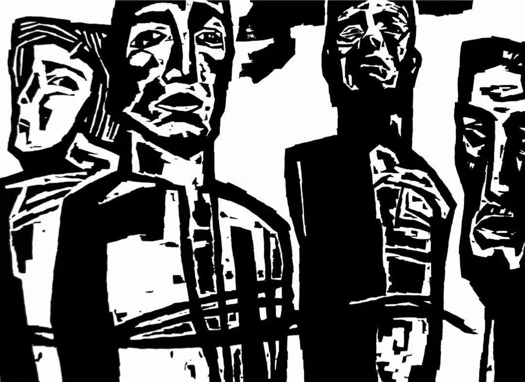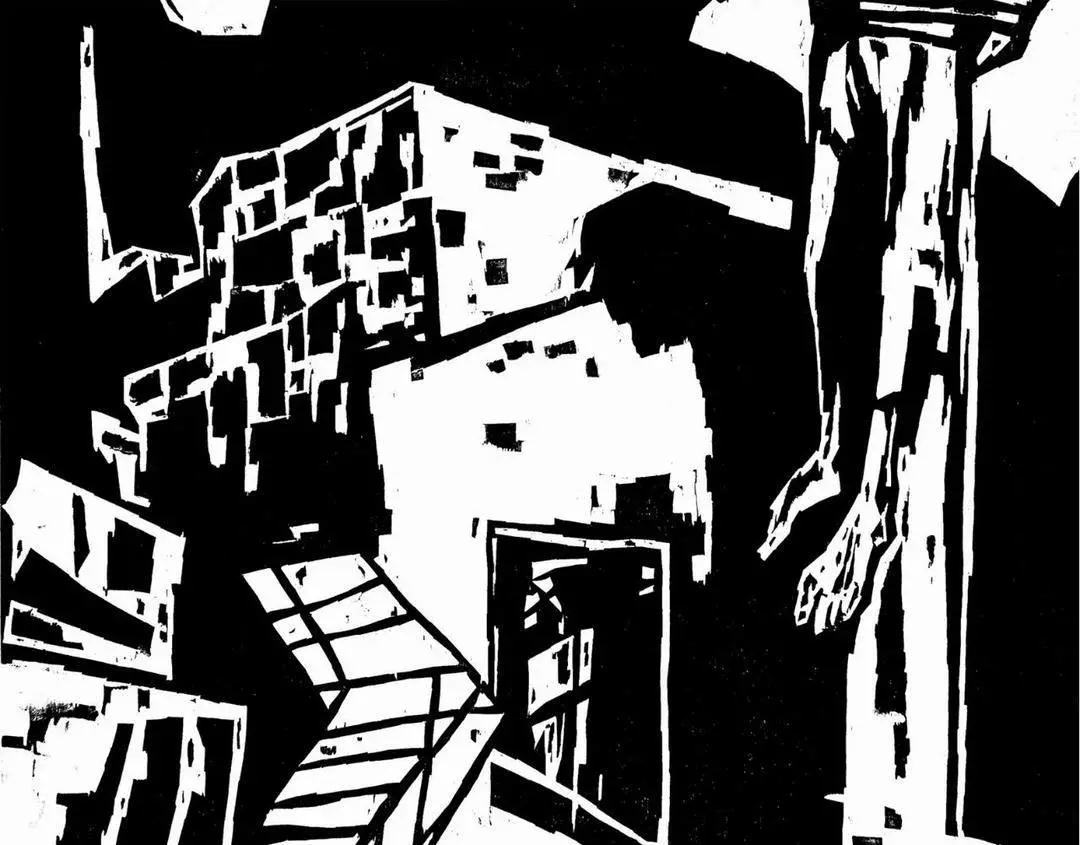这幅大画,在完成构思和绘制草图后,光是上板刻,就刻了一年之久。由于是黑白版画,必须当天印完,从早晨一直印到晚上才得完工。它像宽银幕一样的巨大画面,拉开了悲剧的序幕,把人们引向血雨腥风的往昔。