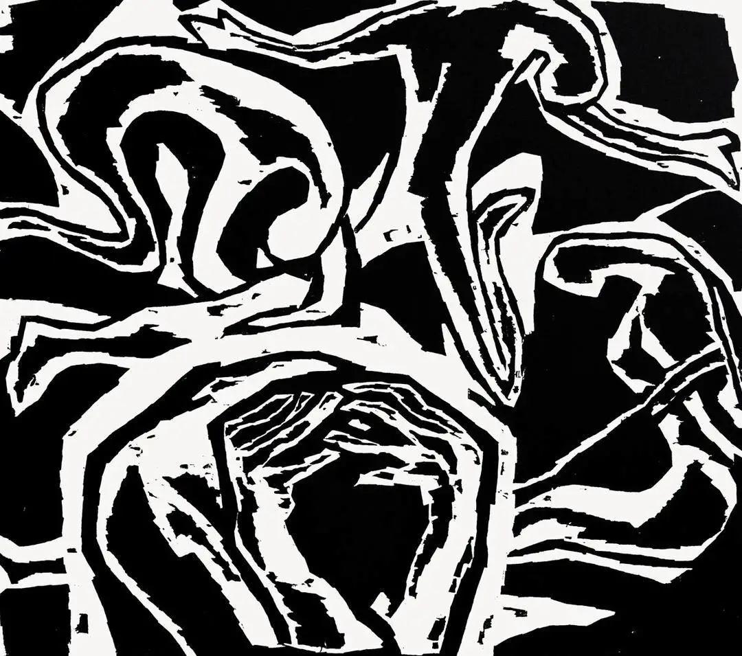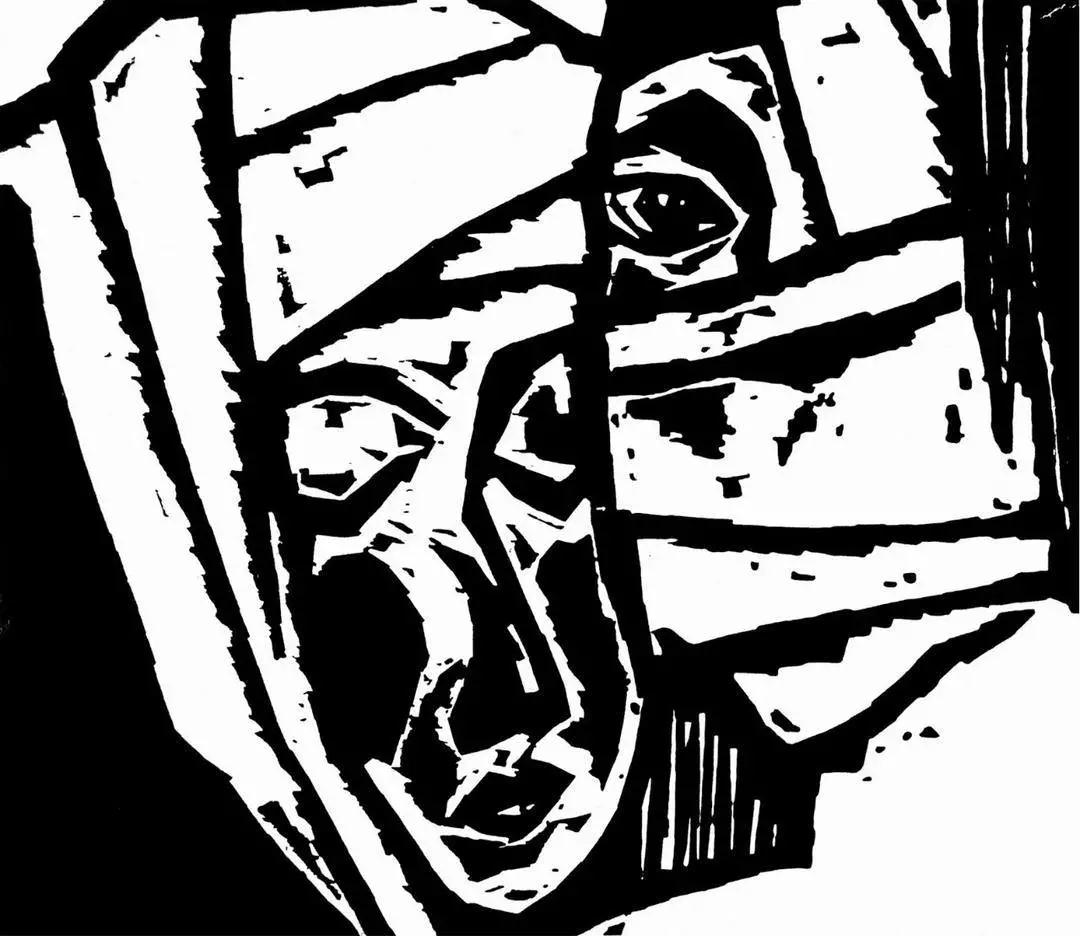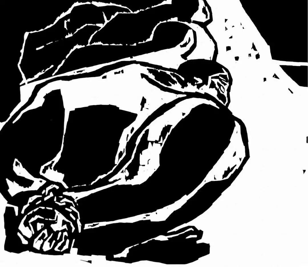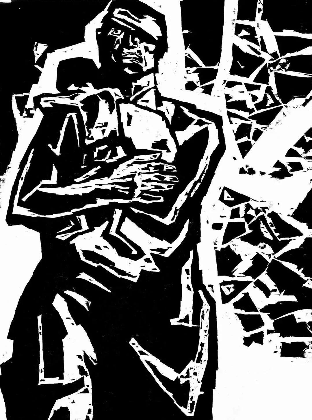 这幅大画,在完成构思和绘制草图后,光是上板刻,就刻了一年之久。由于是黑白版画,必须当天印完,从早晨一直印到晚上才得完工。它像宽银幕一样的巨大画面,拉开了悲剧的序幕,把人们引向血雨腥风的往昔。
