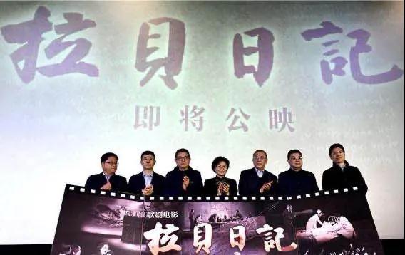 启动仪式上,江苏省委宣传部副部长徐宁、江苏省电影局副局长王明珠、出品单位领导及主创共同翻开一本仿《拉贝日记》原著的日记本,展开了歌剧电影《拉贝日记》精美画面,标志着该电影进入公映阶段。
