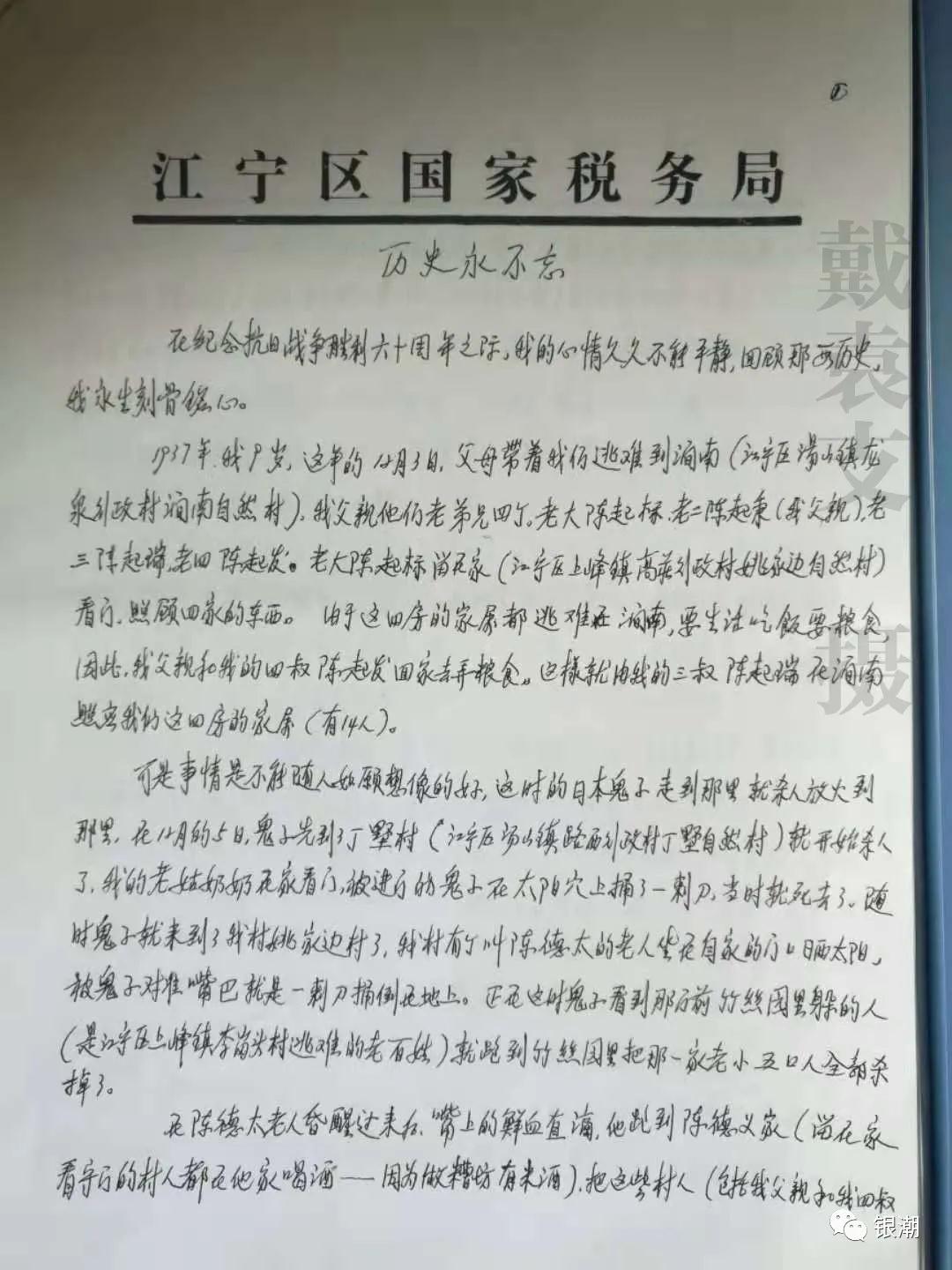 本文为原南京市江宁区国家税务局离休干部陈德武遗稿,由南京大屠杀史与国际和平研究院研究员戴袁支特别推荐。