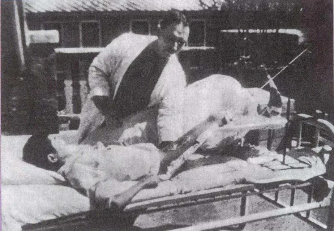 被日军击伤右腿的14岁南京儿童,正在接受救治。