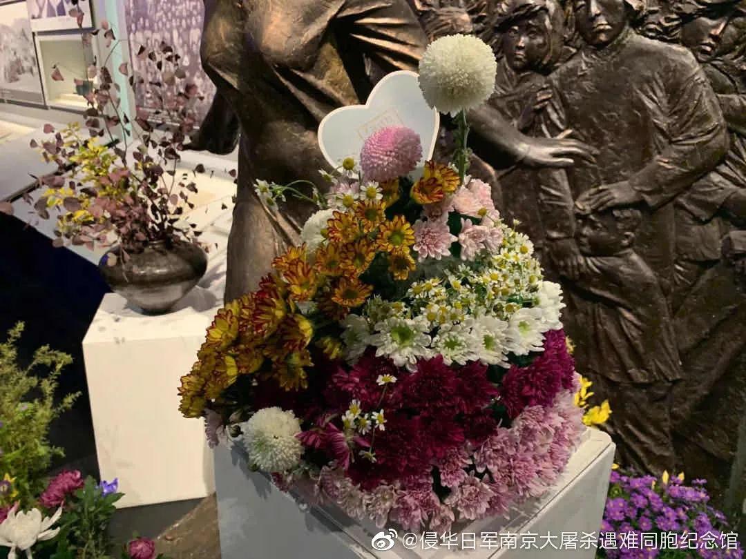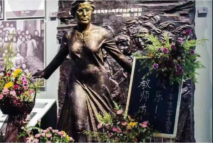 9月27日魏特琳生日:为向魏特琳致敬,第七期花语活动以魏特琳女士生前最爱的菊花为主体创作。寄语牌上写着“魏特琳女士,您看,您最爱的菊花在您面前盛开。恩情永在,永生金陵。”
