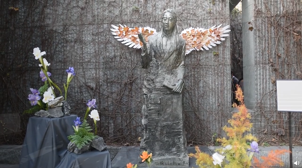 11月9日张纯如祭日:这一天张纯如的铜像被鲜花围绕,我们特意献上代表她英文名Iris的鸢尾花以及菊花,表达对她的思念之情......