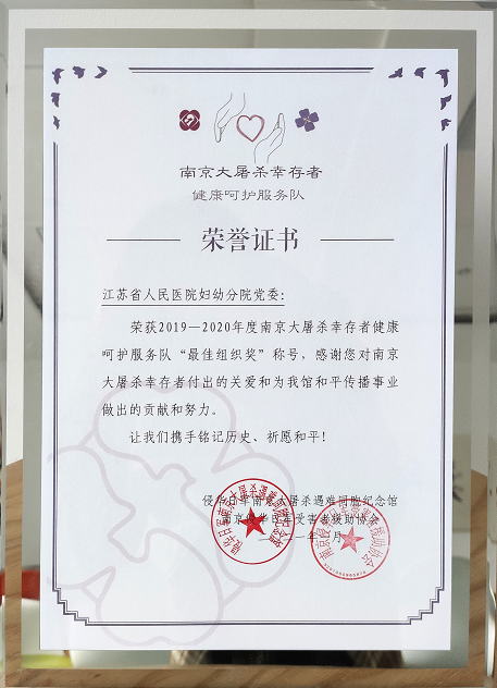 近日,我馆、南京侵华日军受害者援助协会向医护志愿者颁发荣誉证书,感谢他们一直以来对幸存者的关爱,以及为和平传播事业做出的贡献。