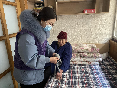 志愿者孙瑾秋、谌珂:“我们上门为3位老人测量血压、血糖,告知她们定期体检的重要性。郑锦阳奶奶前段时间感染了带状疱疹病毒,她把注意事项全部记录在本子上。其她两位老人身体还算健朗。”