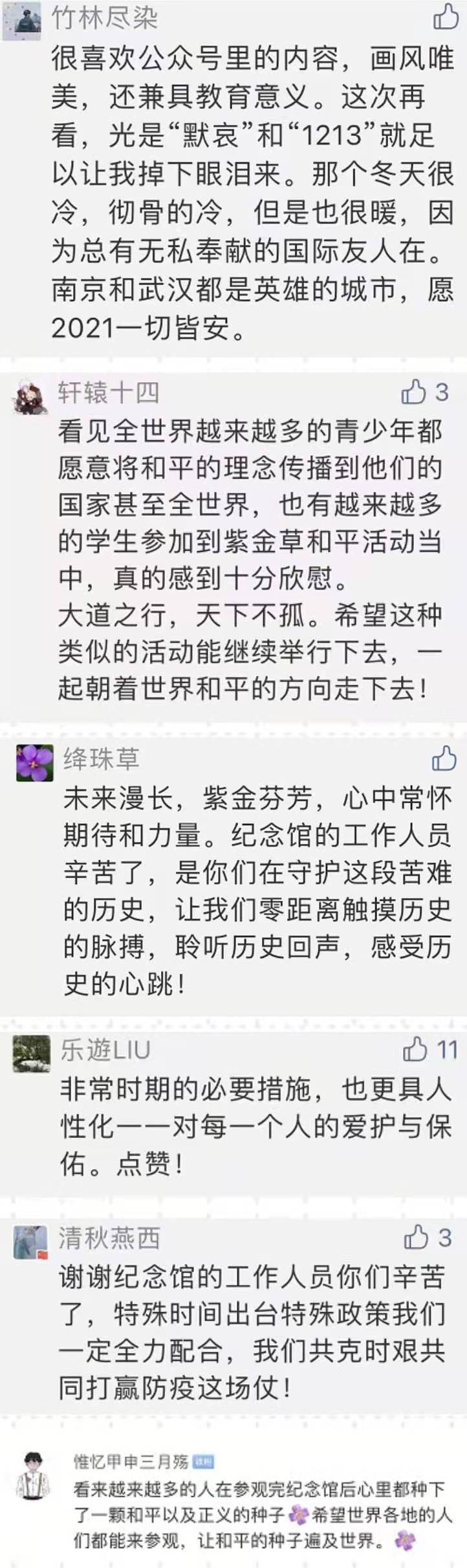 “和平与我们每个人有关”“每次去南京都会去的地方”“我们会永远铭记历史”……这些饱含情感的话语,道出心中那份家国情怀。