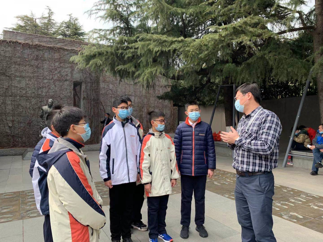初三这天还在纪念馆出现一群穿着校服的学生,他们来自南京外国语中学。放弃假期,来到纪念馆当起小小志愿者。纪念馆工作人员王敏为这群孩子做“岗前培训”,带他们参观纪念馆,了解这段历史,做一名合格的志愿者。