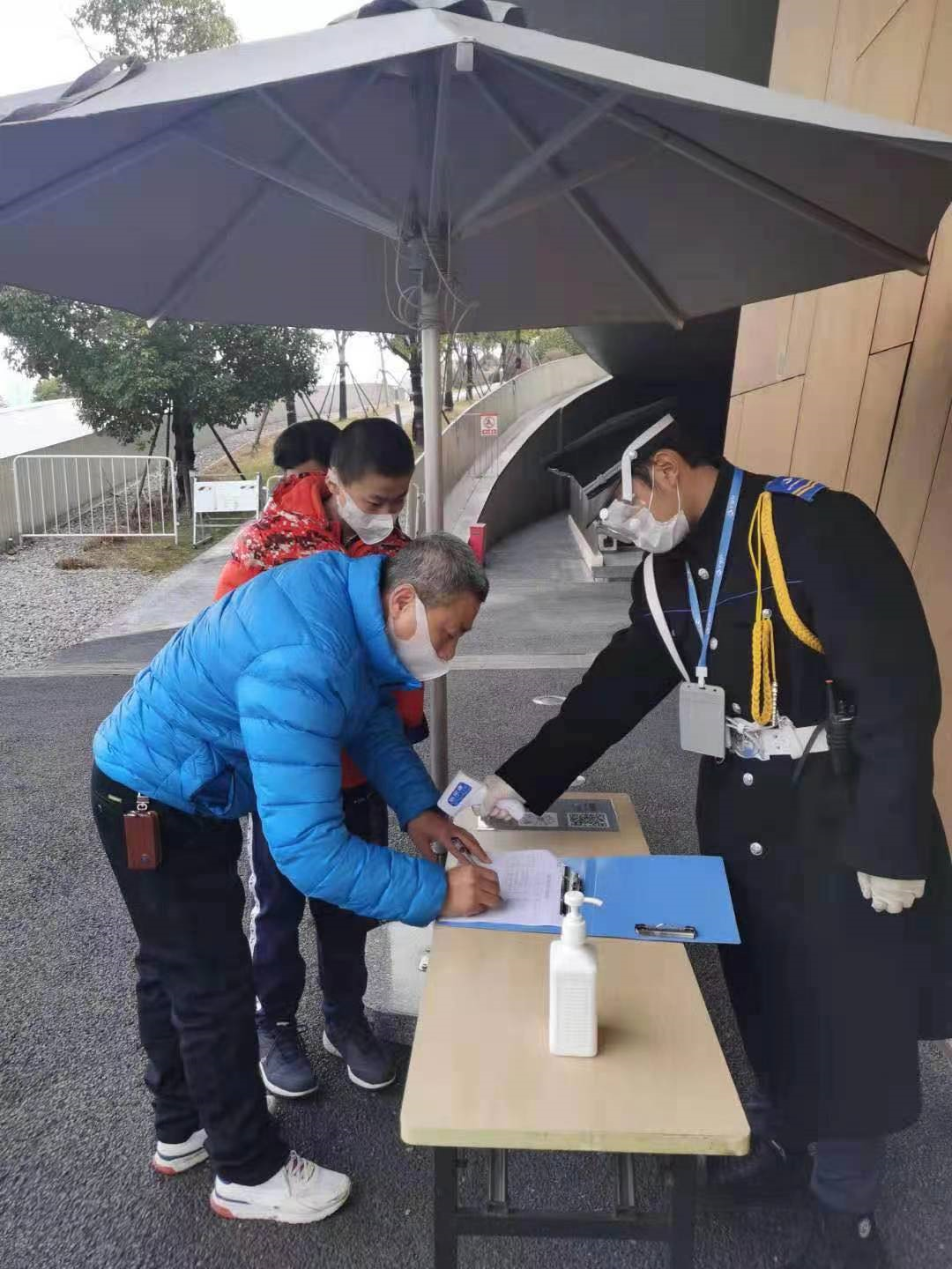 1992年出生的小伙冯浩,春节七天他都在纪念馆坚守岗位。初二的下午,在1号门测温岗,他在太阳下站岗近4个小时。他说:“长这么大,还是第一次没有回家过年,但留下来是自愿自觉的行为。观众们来参观,留言总是‘我爱我的国’。春节假期,我觉得我坚守岗位,努力工作,就是用实际行动热爱祖国。”小编注意到,他拿测温枪的手上,手套里已满是汗水,冯浩说,“戴一会儿就出汗了,忙着忙着时间就过去了。”