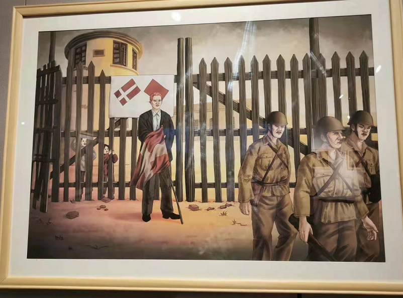 本次展览一共展出了55幅画作,生动叙述了辛德贝格来到南京后救助难民的故事。此次展览也是我馆首次以故事剧本的方式呈现南京大屠杀期间的人道主义救援。