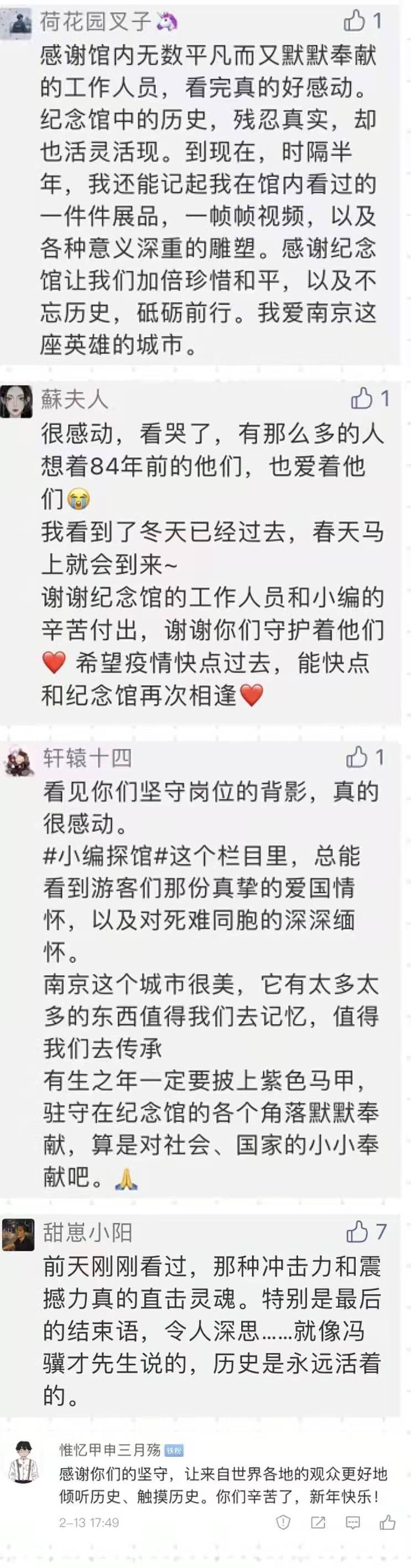 “和平与我们每个人有关”“每次去南京都会去的地方”“没有一个春天不会到来”……这些饱含情感的话语道出心中那份家国情怀。