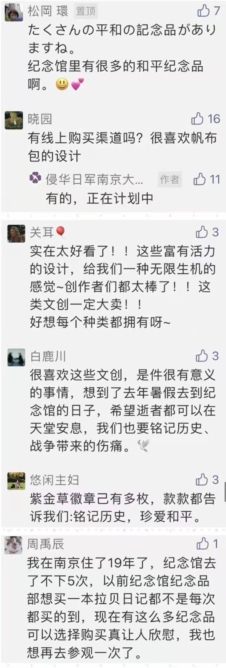 “和平鸽的造型很可爱”“把‘历史与和平’带回家”“很喜欢,想买”……网友纷纷为文创产品打call,还提出许多宝贵建议,谢谢你们!