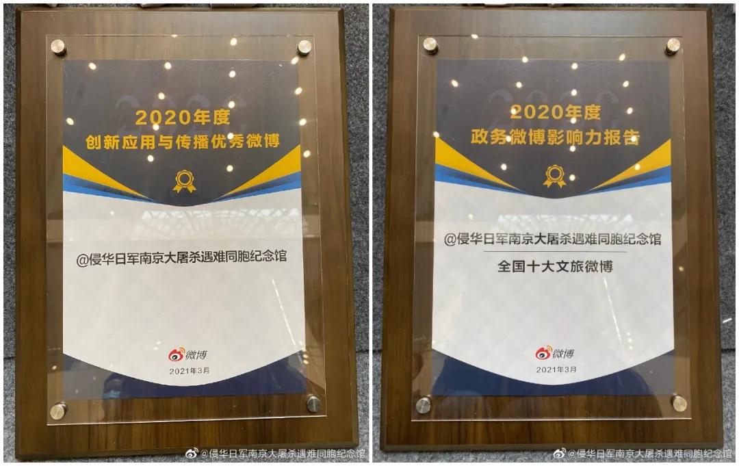 3月17日,在河南郑州举办的年度“政务V影响力峰会”上,我馆的官方微博荣获微博颁发的2020年度“创新应用与传播优秀微博”及“十大文旅微博”两项大奖。