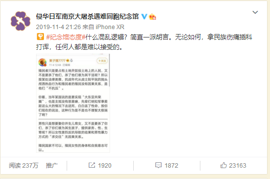 2018年初南京紫金山碉堡“精日”事件中,纪念馆微博第一时间发文怒斥;我们联合国内主要抗战纪念馆,共同在微博发起“加强抗战历史教育”的倡议;我们在南京人大的牵头下,积极会同专家学者、法律界人士共同起草了《南京市国家公祭保障条例》……这十年,我们发出的警示之声,振聋发聩。