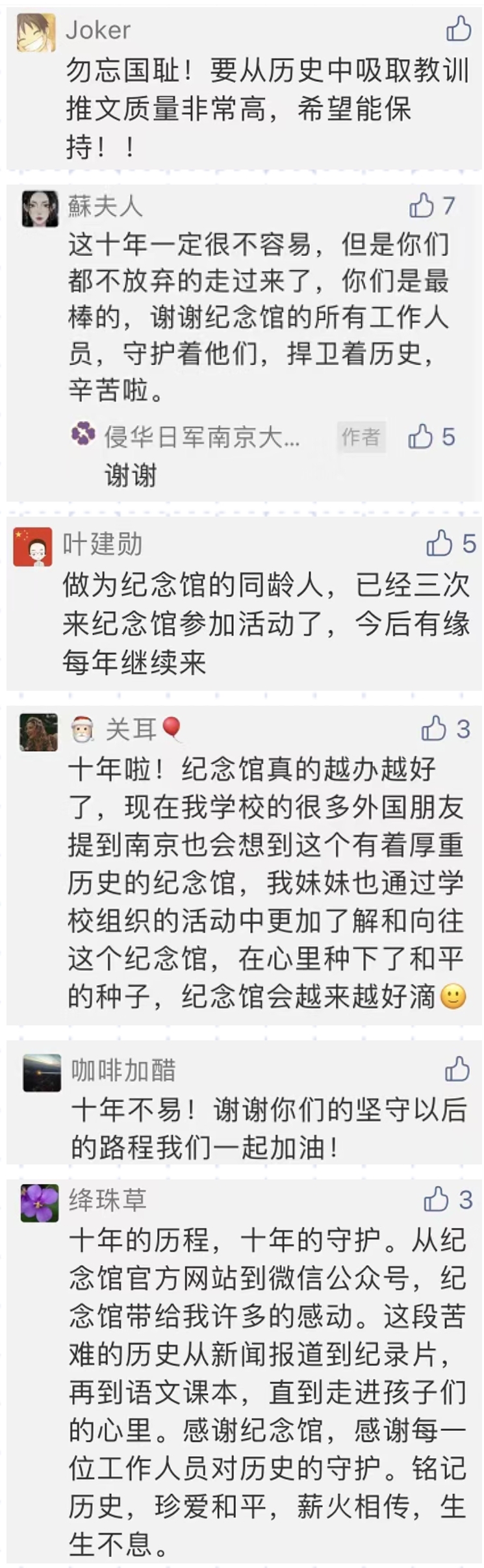 我馆官微荣获2020年度“创新应用与传播优秀微博”、“十大文旅微博”。蓦然回首,我们在新媒体的路上正好走过了整整10年,谢谢你们10年来的陪伴。纪念馆是有物理边界的,但新媒体是无界的。官微评论区也成为网友和观众情感表达的窗口,这些饱含情感的话语,道出心中那份家国情怀。
