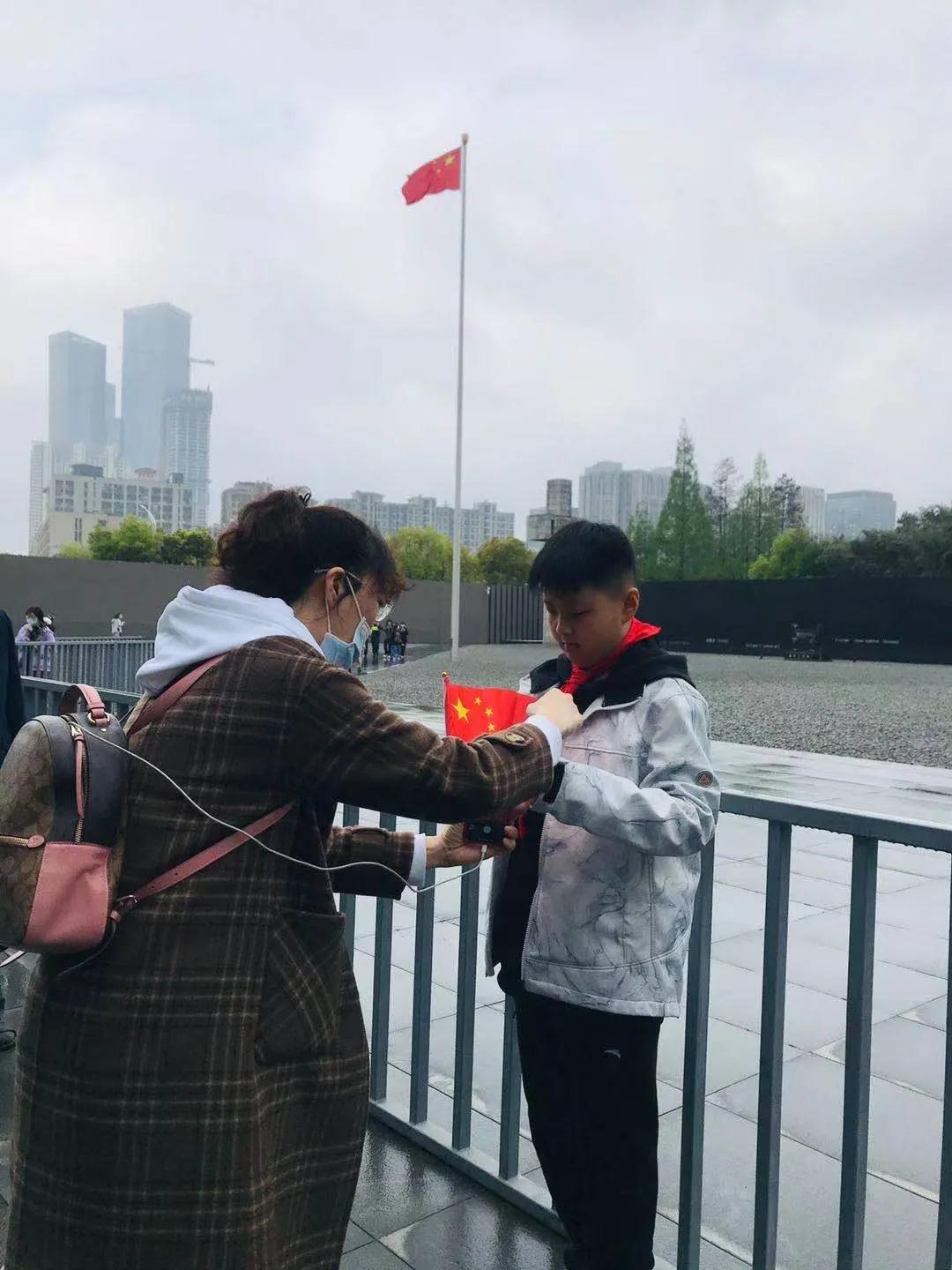 来自山东潍坊的王女士带儿子陈旺阳前来参观。在史料陈列厅前,王女士特地让儿子佩戴红领巾。她说,孩子正读小学六年级,语文课本里有抗战相关题材,“戴上红领巾是对先烈的尊重。”