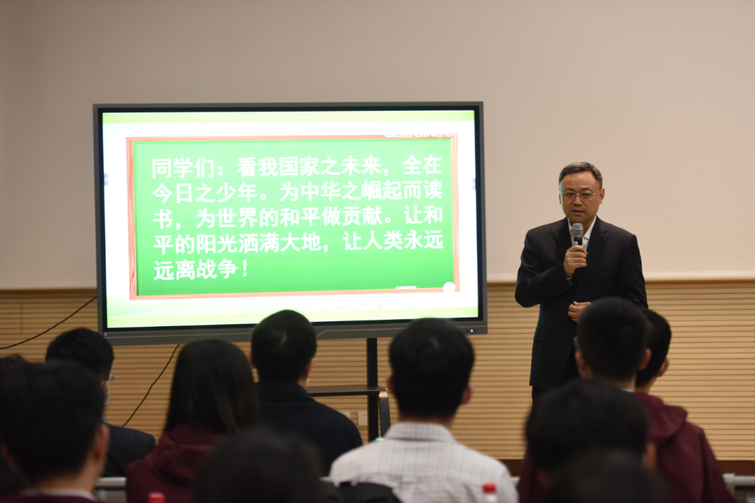 本期参观学习结束后,纪念馆张建军馆长与同学们互动交流,并寄语:“如今你们虽然生活在和平年代,但是不要忘记历史,更要明确自己未来走什么样的路。学会奋斗,自立自强。将来出国后,做和平的传播者,把和平的种子播撒向世界各地。”
