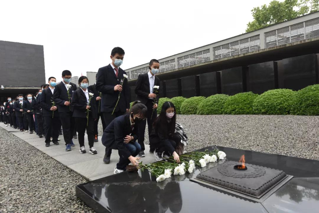 随后,学生们参观了史料陈列厅、“三个必胜”专题展区,并向死难者敬献菊花。