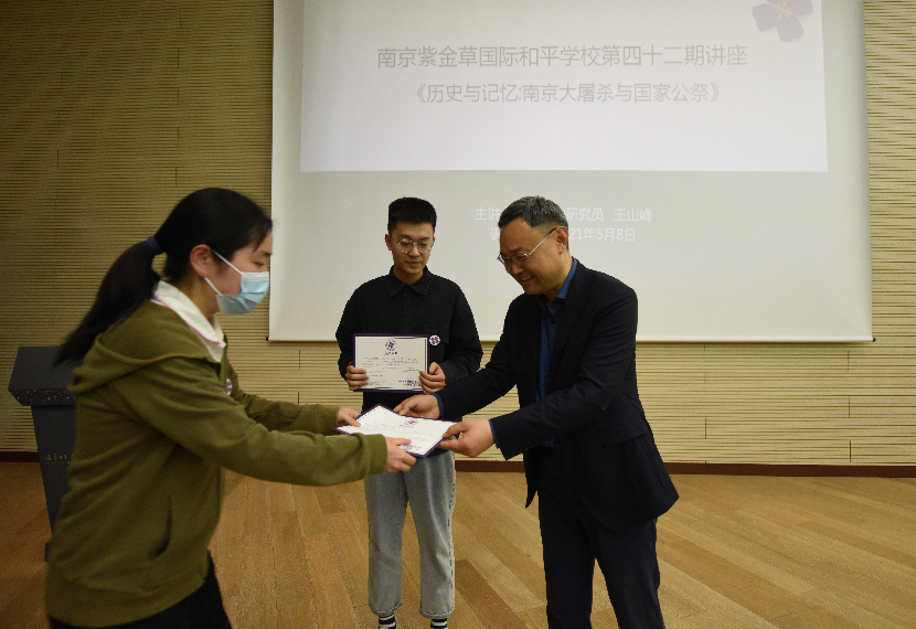 参观纪念馆,向南京大屠杀死难者敬献鲜花,听幸存者讲述亲身经历,听专家讲述历史与和平……5月7日、8日,纪念馆紫金草国际和平学校第41期和42期学习班开课,来自南京市玄武高级中学、南京理工大学国际学院近百名即将出国留学的学生汇聚于此,上了一堂特别的“行前一课”。值得一提的是,“行前一课”首次迎来了高校学生。他们在出国留学前来到纪念馆接受爱国主义与和平学教育。