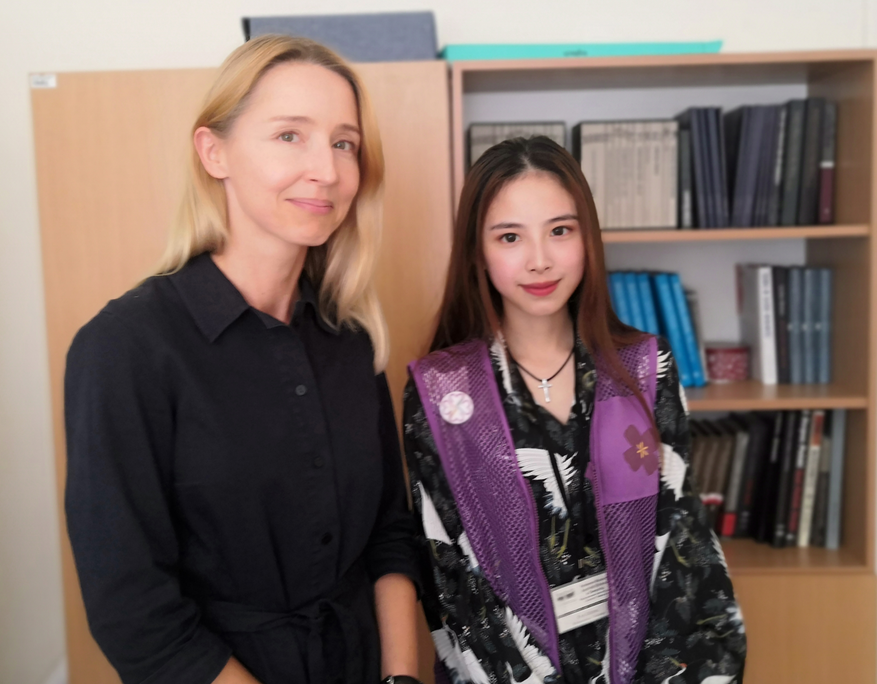 4年来,她接待了来自美国、德国、日本、西班牙、苏里南、老挝等上百个国家的国际友人和参观者,逐渐成为纪念馆国际交流中的重要一员。
