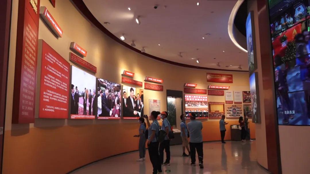 曲面OLED显示屏、三折屏LED影像墙、双面壁纸屏……深圳改革开放展览馆除了展陈新,科技含量也很足。特别是长达65米的新媒体艺术长卷,通过巨幅墙面投影,以水墨动画、沙画、三维特效和动态照片形式,生动展现了广东改革开放40年的发展变化:墨彩变幻间,弄潮儿撑着小船搏风斗浪,珠江两岸一座座高楼拔地而起,小船逐渐变成了巨轮;细沙在指尖飞舞,将一个“70后”广东人40年间的成长、生活、创业故事娓娓道来……精彩的策划,创新的表达,令观众们赞叹不已。