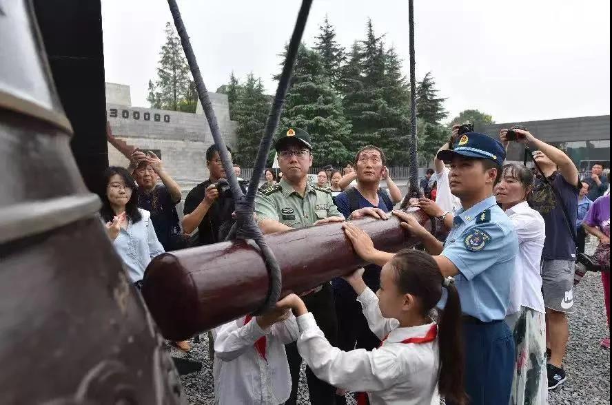 2018年9月18日,各界代表在纪念馆公祭广场撞响和平大钟。