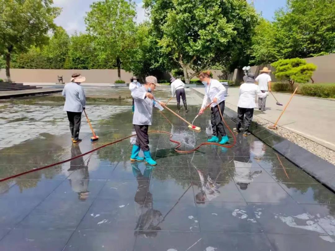 除了强化疫情防控等措施之外,纪念馆还利用闭馆时间,对全馆上下进行了一场“大扫除”。洗刷水池、墙壁清洗、高空掸尘、消防栓灭火器的保养维护、手扶梯玻璃的清洁擦拭等,力争全方位无死角。纪念馆会始终将观众的安全放在第一位。对健康卫生安全的管理永远不间断。