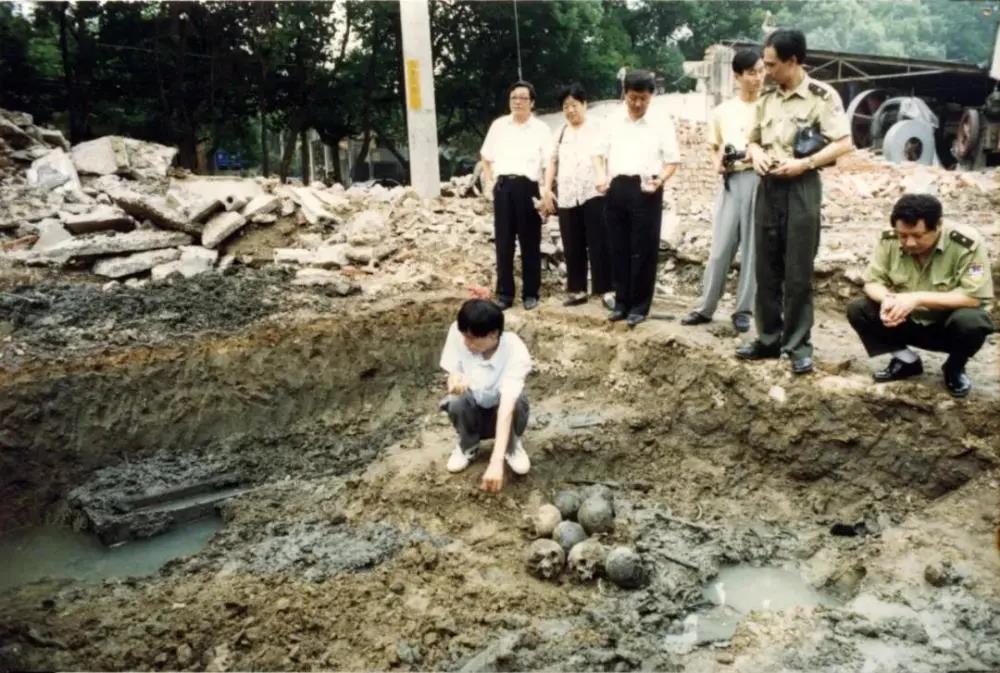 1998年8月18日,在南京一处建筑工地深挖过程中,意外挖出41个人头骨和大量肢骨,现场散发刺鼻气味。侵华日军南京大屠杀遇难同胞纪念馆时任馆长朱成山,当时正在外地出差,一通电话后,他立即赶回南京。