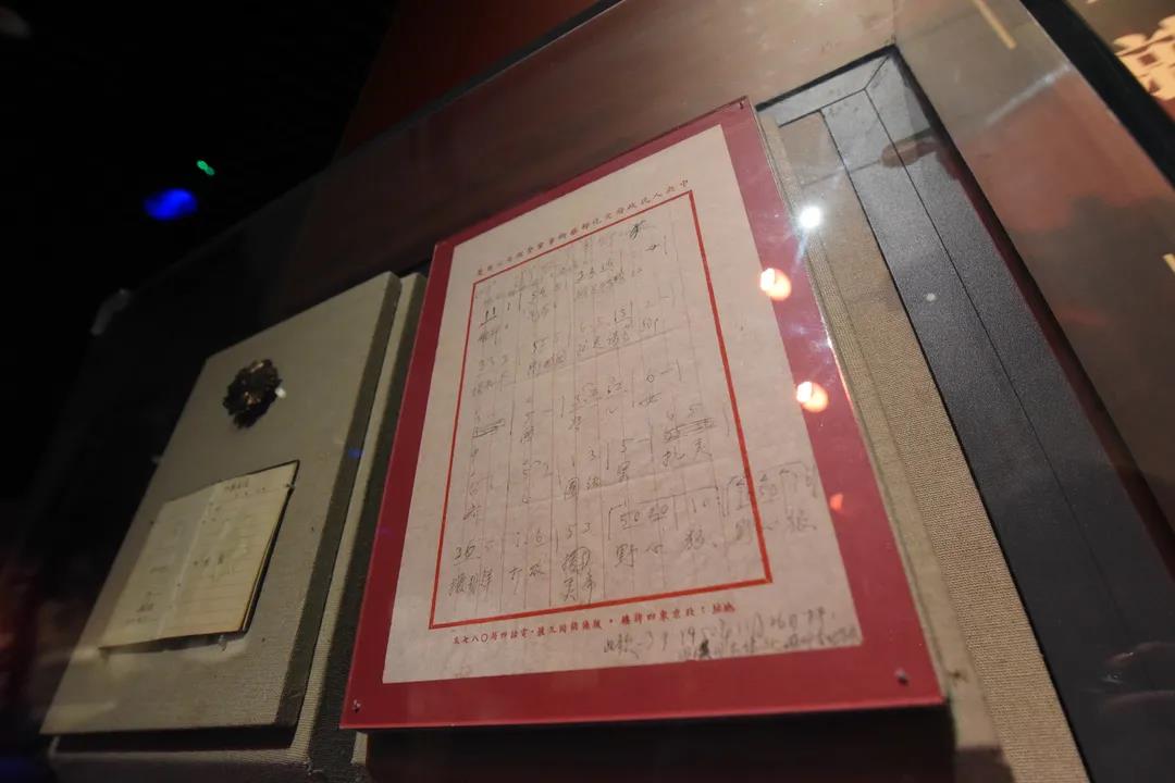 讲解员孙从益指着展柜中的一张写着简谱词曲的泛黄信笺纸说:“这首《中国人民志愿军战歌》的作词者是志愿军炮兵第1师第26团5连的指导员麻扶摇,当时,他在战前动员会上被战士们的决心书所感动,写下了一首出征诗。新华社记者在部队采访时听到了这首诗,引用到文章里,发表在1950年11月26日的《人民日报》上。巧的是,这天下午,作曲家周巍峙翻报纸时看到这首诗,大为感动,仅用了半小时就谱写了歌曲。这份手稿就是周巍峙捐赠给我馆的。”